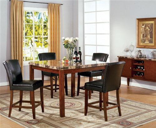 You will receive a total of 1 counter height dining table and 4 parson stools Counter height dining table 47W x 47L x 36H Stools 24 Seat Height Finish Black Dark Brown Material Wood Faux Marble Bycast Leather 5pc Counter Height Dining Table Stools Set Dark Brown Finish Table features