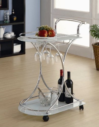 On Sale 2013 Serving Cart with Frosted Glass Shelves in Chrome Metal Frame